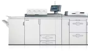CPrint at 90 ppm regardless of media type, weight or when duplexing — and always at 1200 x 1200 dpi (productivity may be affected with paper weights between 300–350 g/m2). Ricoh’s PxP™ chemical toners and oil-free fusing technology deliver near-offset results with smaller, more uniform toner particles for sharper images and better fills with a matte finish. Quickly replace high-capacity toner bottles and reload paper trays while running for uninterrupted performance. Achieve consistent image quality with advanced image stabilization, single direction development, mechanical paper registration, enhanced fusing technologies, automatic calibration adjustments, and more.